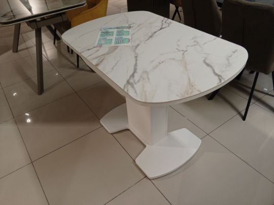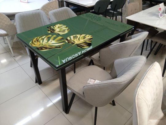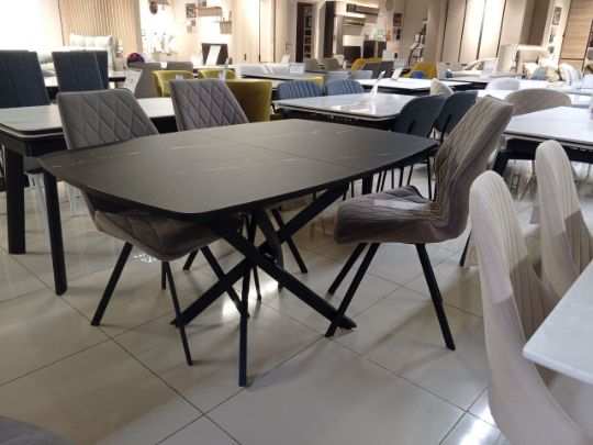 Столешница - керамогранит , основание -металл. Вельвет -дизайнерское решение которое придаст индивидуальность вашему интерьеру.